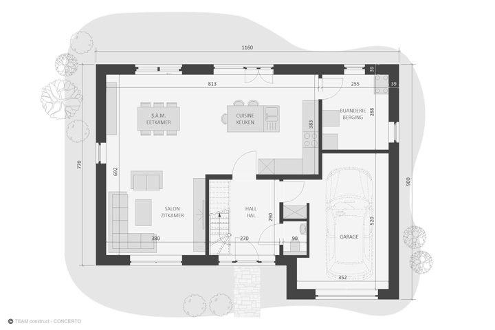 🏡 VILLA PEB A+ QZEN – CONSOMMATION D’ÉNERGIE QUASI NULLE ! 🏡 Découvrez cette superbe villa 100% traditionnelle, conçue pour un confort absolu et une efficacité énergétique exceptionnelle ! Située dans un cadre agréable résidentiel. 🌟 Points forts de la villa : ✅ Construction ultra-performante Triple vitrage Isolation renforcée : 14 cm (murs), 12 cm (sol), 22 à 44 cm (toiture) ✅ Équipements écologiques & durables 13 panneaux solaires photovoltaïques (13x445 Wc) Pompe à chaleur & chauffage au sol Ventilation double flux avec récupérateur de chaleur. Citerne eau de pluie de 10000 litres. ✅ Beau terrain de 1066m² . ✅ Agencement moderne & personnalisable Possibilité de modifications et agrandissements à petit prix Large choix de matériaux sans supplément ! 🏰 Finition clé sur porte – Prix fixe garanti dans le contrat! 💰 Prix total : 461.944€ TTC, comprenant : ✔ TVA incluse ✔ Honoraires d’architecte ✔ Frais de notaire & enregistrement sur le terrain ( sur une base de 3%) ✔ Études techniques (stabilité, PEB, sondage du terrain…) ✔ Coordinateur de sécurité & assurance décennale ✔ Budget frais de raccordement & Certibeau 📍 Visitez notre maison témoin ! 📆 Sur rendez-vous 7j/7 📞 02/5564756 🔗 Plus d’infos : www.teamconstruct.be