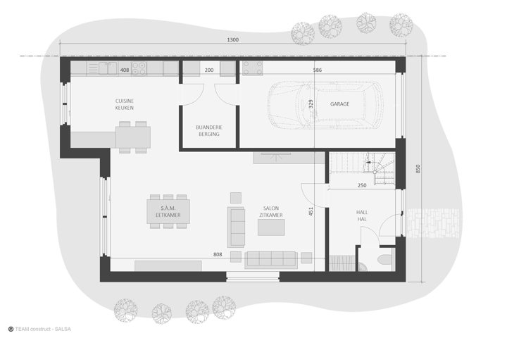Deze zéér energiezuinige nieuwbouwwoning met energiepeil cat A kan voor u gebouwd worden volgens de meest energiezuinige norm dankzij warmtepomp(lucht/water) met vloerverwarming, ventilatiesysteem met dubbele luchtstroom en warmterecuperatie (systeem D), driedubbele beglazing, 13 zonnepanelen(445wp), performante isolatie en hoogwaardige afwerking door ons sterk lastenboek. Het ontwerp kan nog volledig aan uw smaak worden aangepast alsook de indeling en de afwerkingsgraad. Meer info via Team Construct op het nummer: 02/556.47.56. De prijs bedraagt ALL-IN : 565.105€ (Grond + registratie + notaris + woning + 21% btw + aansluitingskosten nutsvoorziening)