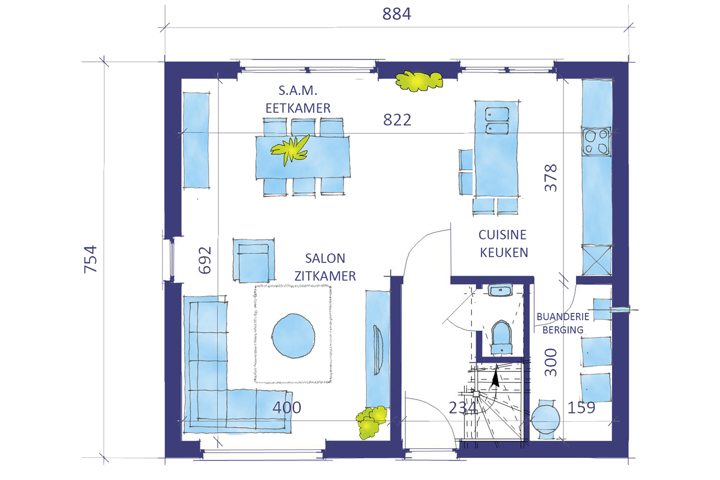 Deze zéér energiezuinige nieuwbouwwoning met energiepeil cat A kan voor u gebouwd worden volgens de meest energiezuinige norm dankzij warmtepomp (lucht/water) met vloerverwarming, ventilatiesysteem met dubbele luchtstroom en warmterecuperatie (systeem D), driedubbele beglazing, 13 zonnepanelen (445wp), performante isolatie en hoogwaardige afwerking door ons sterk lastenboek. Het ontwerp kan nog volledig aan uw smaak worden aangepast alsook de indeling en de afwerkingsgraad. Meer info via Team Construct op het nummer: 02/556.47.56. De prijs bedraagt ALL-IN : 529.569€ (Grond + registratie + notaris + woning + 21% btw + aansluitingskosten nutsvoorziening)