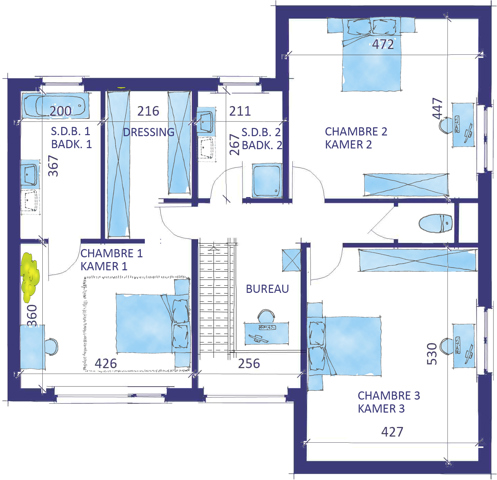 Projet de villa Qzen: Quasi Zéro Energie. 100% Traditionnelle. PEB A+ . Triple vitrage, panneaux photovoltaïques, ventilation double flux avec récupérateur de chaleur. Isolation des murs 14cm, du sol 12cm entre 22 et 44 cm d'isolation en toiture. Sur un terrain de 2291 m². La maison proposée se compose d'un grand hall d’entrée, salon salle à manger en L, d'une cuisine non équipée, d’une buanderie et d’un double garage. A l’étage 3 chambres, une sdb avec meuble lavabo, appareils sanitaires et robinetterie inclus et une salle de douche. Hall de nuit, espace bureau et wc séparé. Modification des plans et personnalisation (possibilité d'agrandissement à petit prix). Grand choix de matériaux sans supplément. Finition clé sur porte en construction 100% traditionnelle avec cahier des charges très complet. Nous vous invitons à découvrir, sur rendez-vous, notre splendide maison témoin de Chaumont-Gistoux, en semaine et le weekend. Contactez-nous au 02/556 47 56. Notre adresse : Chemin du Bonly en face du n°73, 1325 Chaumont-Gistoux. Le prix total du projet, TVA comprise, est de 531.338€. Ce prix fixe inclut la construction, l’architecte, le terrain, les frais de notaire, un budget raccordements de 5.000€, une réserve pour fondation de 15.000€, l’essai de sol, l’ingénieur, l’étude de stabilité, la PEB et le coordinateur sécurité. Pour plus d’informations, consultez www.teamconstruct.be ou appelez le 02/556 47 56.