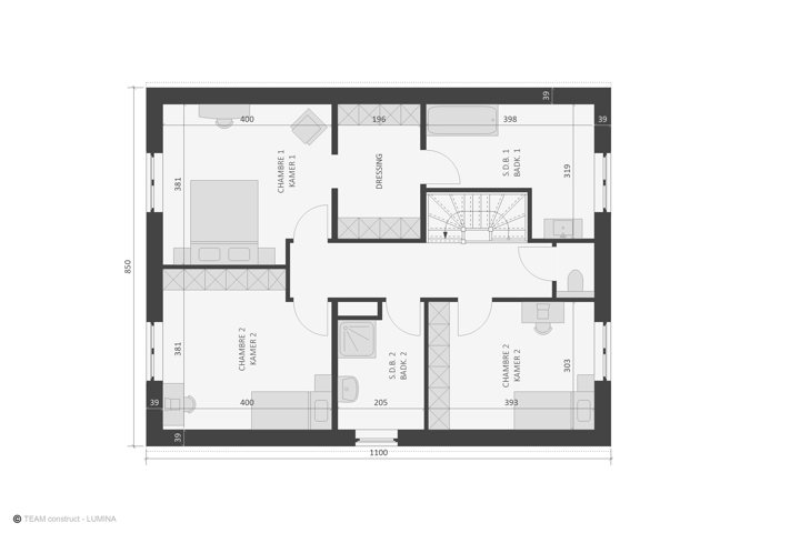 Deze zéér energiezuinige nieuwbouwwoning met energiepeil cat A kan voor u gebouwd worden volgens de meest energiezuinige norm dankzij warmtepomp (lucht/water) met vloerverwarming, ventilatiesysteem met dubbele luchtstroom en warmterecuperatie (systeem D), driedubbele beglazing, 13 zonnepanelen (445wp), performante isolatie en hoogwaardige afwerking door ons sterk lastenboek. Het ontwerp kan nog volledig aan uw smaak worden aangepast alsook de indeling en de afwerkingsgraad. Meer info via Team Construct op het nummer: 02/556.47.56. De prijs bedraagt ALL-IN : 542.700€ (Grond + registratie + notaris + woning + 21% btw + aansluitingskosten nutsvoorziening)