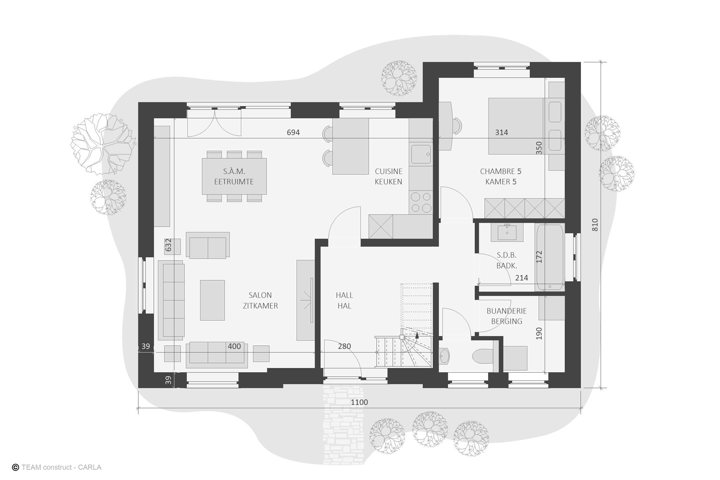 Proche des facilités et des axes de communications sur un terrain plat avec vue sur la campagne, projet de villa basse énergie PEB A+ ,100% traditionnelle k30 (triple vitrage,14 cm d'isolation dans les murs, entre 22 et 44 cm d'isolation en toiture,12 cm d'isolation dans le sol, panneaux solaires photovoltaiques compris.) sur un terrain de 1735 m². La maison proposée se compose d'un beau salon salle à manger, d'une cuisine (non comprise), d'une buanderie, de 5 chambres, de 1 sdb (meuble compris) + 2 SDD. Nombreuses possibilités de personnaliser ou de modifier le projet (possibilité d'agrandissement à petit prix). Grand choix de matériaux sans supplément. Finition clé sur porte en construction 100% traditionnelle avec cahier des charges très complet. Maison témoin ouverte chaque samedi et dimanche de 14h00 à 18h00 à Chaumont-Gistoux SUR rendez-vous : Chemin du Bonly face au n°67. Plus d'information www.teamconstruct.be ou 02/556.47.56. Prix hors frais. Vente sous régime T.VA. et droit d'enregistrement. PEB exceptionnel. Prix total: 523.651€ ttc ( T.V.A. comprise, honoraire architecte compris, estimation de frais de raccordement compris, frais de notaire et d'enregistrement sur le terrain compris, bilan énergétique compris, une réserve de fondation comprise, coordinateur de sécurité compris, le sondage du terrain compris, l'étude de stabilité comprise, le PEB compris, ...) Plus d'information www.teamconstruct.be