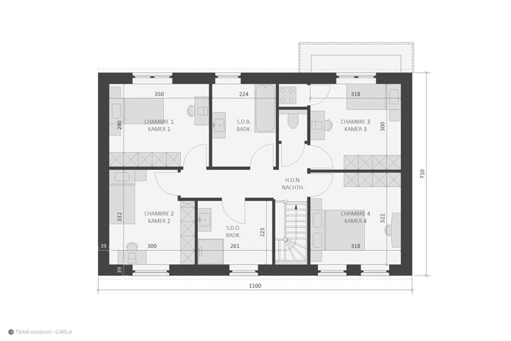 Proche de toutes les facilités ,dans un quartier recherché avec vue dégagée sur la campagne, projet de villa basse énergie 100% traditionnelle k30 (triple vitrage,14 cm d'isolation dans les murs, entre 22 et 44 cm d'isolation en toiture,12 cm d'isolation dans le sol, panneaux solaires photovoltaiques compris) sur un terrain de 1180 m². La maison proposée se compose d'un beau salon salle à manger, d'une cuisine (non comprise), d'une buanderie, de 5 chambres, de 3 sdb (meuble compris). Nombreuses possibilités de personnaliser ou de modifier le projet (possibilité d'agrandissement à petit prix) .Grand choix de matériaux sans supplément. Finition clé sur porte en construction 100% traditionnelle avec cahier des charges très complet. Maison témoin Classic ouverte SUR RENDEZ-VOUS chaque samedi et dimanche de 14h00 à 18h00 à Chaumont-Gistoux, Chemin du Bonly face au n°67. Plus d'information www.teamconstruct.be ou 02/5564756. Prix hors frais. Vente sous régime T.VA. et droit d'enregistrement. PEB exceptionnel. Prix total: 612.311€ ttc (T.V.A. comprise, honoraire architecte compris, estimation de frais de raccordement compris, frais de notaire et d'enregistrement sur le terrain compris, bilan énergétique compris, une réserve de fondation comprise, coordinateur de sécurité compris, le sondage du terrain compris, l'étude de stabilité comprise, le PEB compris, ...) Plus d'information www.teamconstruct.be