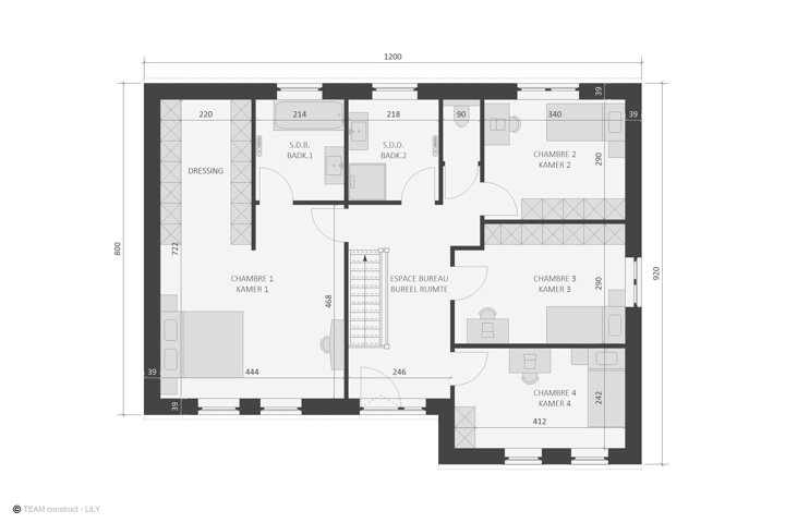 Proche de toutes les facilités, dans un quartier recherché avec vue dégagée sur la campagne, projet de villa basse énergie 100% traditionnelle k30 (triple vitrage,14 cm d'isolation dans les murs, entre 22 et 44 cm d'isolation en toiture,12 cm d'isolation dans le sol, panneaux solaires photovoltaiques compris) sur un terrain de 1180 m². La maison proposée se compose d'un beau salon salle à manger, d'une cuisine (non comprise), d'une buanderie, de 4 chambres, de 2 sdb (meuble compris), garage 1 voiture. Nombreuses possibilités de personnaliser ou de modifier le projet (possibilité d'agrandissement à petit prix). Grand choix de matériaux sans supplément. Finition clé sur porte en construction 100% traditionnelle avec cahier des charges très complet. Maison témoin Classic ouverte SUR RENDEZ-VOUS chaque samedi et dimanche de 14h00 à 18h00 à Chaumont-Gistoux, Chemin du Bonly face au n°67. Plus d'information www.teamconstruct.be ou 02/5564756. Prix hors frais. Vente sous régime T.VA. et droit d'enregistrement. PEB exceptionnel. Prix total: 646.479 ttc ( T.V.A. comprise, honoraire architecte compris, estimation de frais de raccordement compris, frais de notaire et d'enregistrement sur le terrain compris, bilan énergétique compris, une réserve de fondation comprise, coordinateur de sécurité compris, le sondage du terrain compris, l'étude de stabilité comprise, le PEB compris, ...) Plus d'information www.teamconstruct.be